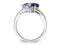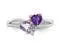 A beautiful purple amethyst and plush rosy pink quartz both heart shaped juicy gemstones come together in this rhodium plated sterling silver ring that is both affordable and fashionable.