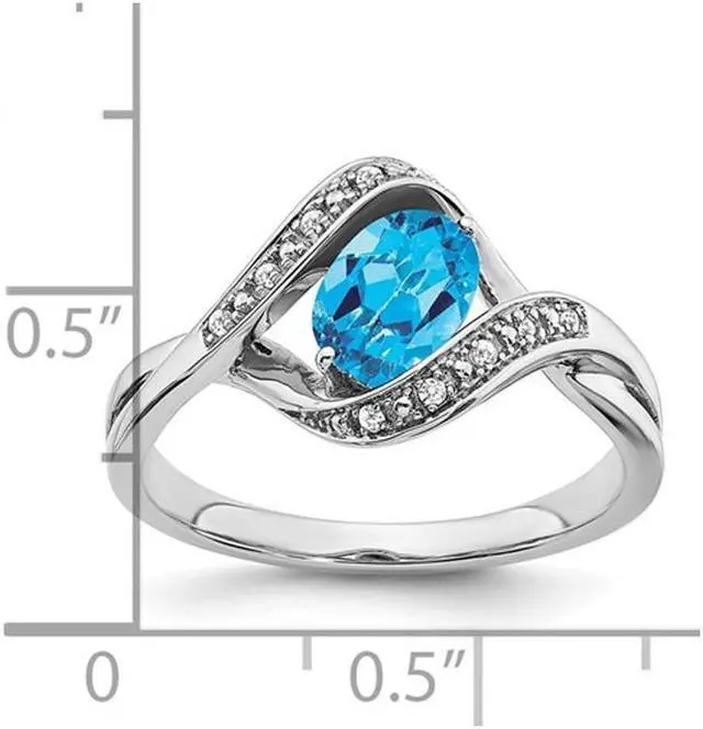 Crisp 14 karat white gold is crafted into an stylish ring motif with a stunning blue topaz at its center 1.05 carat (ctw) as 10 sparkling diamonds wrap around the December birthstone completing the look.