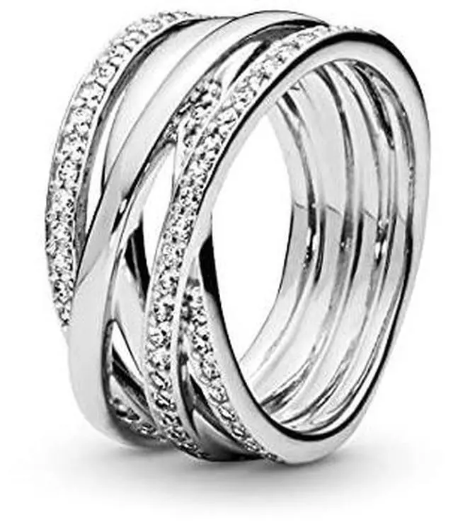 Let your individuality shine through this ring of sparkling and polished lines. Crafted in sterling silver this sophisticated and contemporary design beautifully entwines rows of polished metal with rows of shimmering cubic zirconia stones. This statement style can be worn on its own as a chic cocktail ring or together with other Pandora rings.