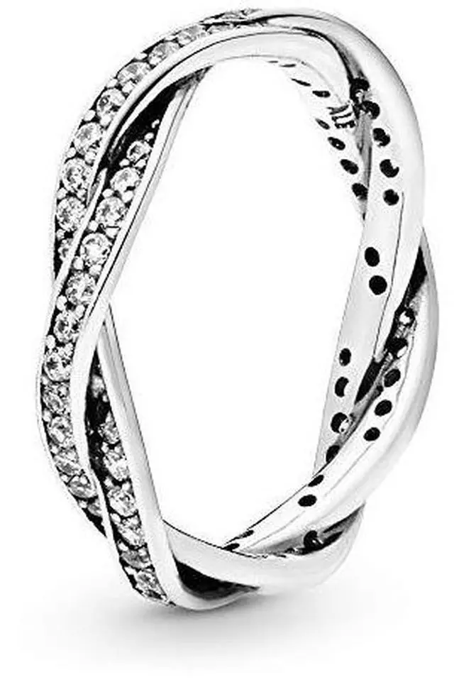 A beautiful sterling silver ring with pave cubic zirconia gemstones. Authentic Pandora Jewelry. Comes in original Pandora pouch/box.