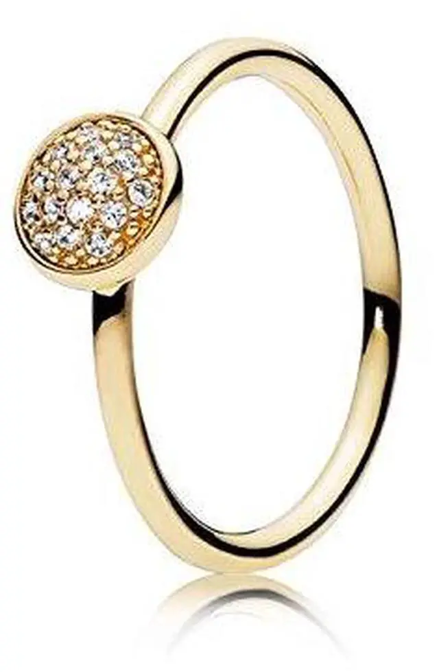 Add a little luxury to everyday looks. Inspired by droplets of water this 14k gold ring is set with cubic zirconia stones on its domed centrepiece. The slender band is polished to a high shine and the classic shape is perfect for stacking. Wear with other pieces from the series for a matchy-matchy look.