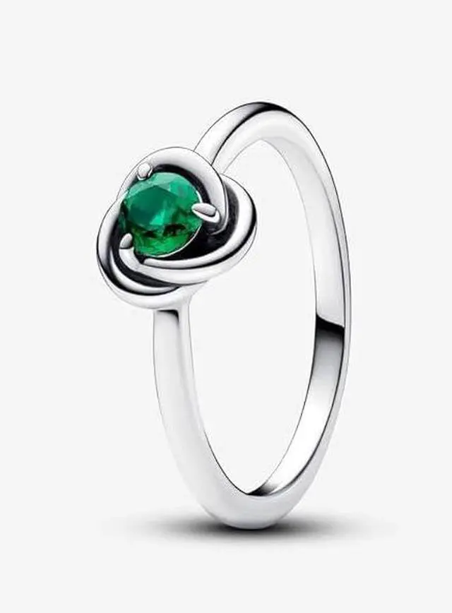 Wear a symbol of forever with the Green Eternity Circle Ring. This sterling silver ring features one claw-set sparkling royal green man-made crystal. The polished band wraps around the centre stone in an openwork braided infinity pattern. Whether you want to carry a reminder of eternal love or a symbol of the timeless joy that infuses each and every moment this colourful eternity ring will bring sparkling meaning to your look.