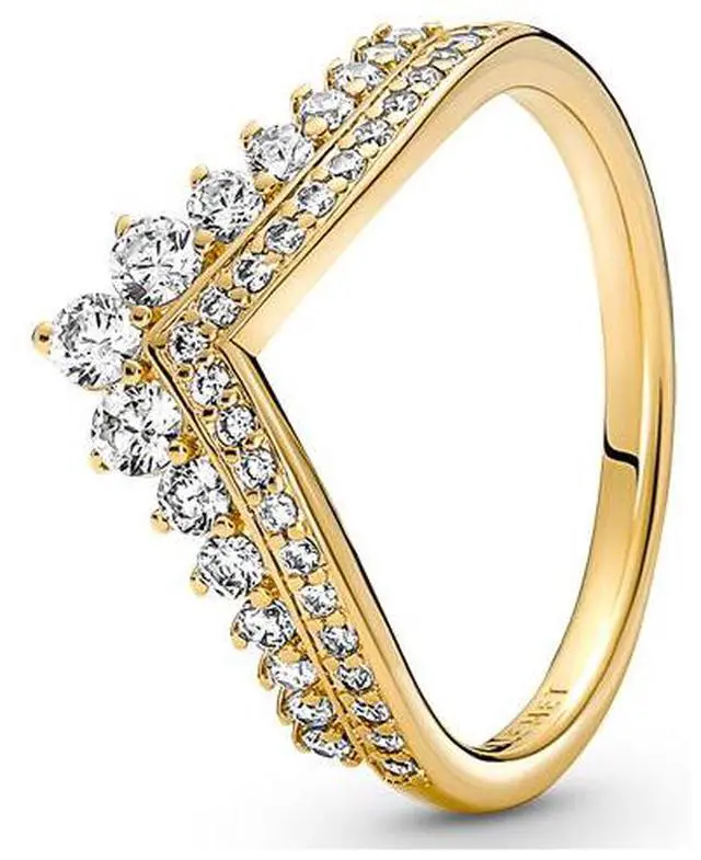 Let even more radiance into your ring styling with this glittering tiara ring fit for a modern-day princess. Inspired by royal headpieces from across history this 14k gold-plated wishbone ring will add a regal feel to your everyday looks. Set with rows of glittering cubic zirconia in classic settings the chevron-shaped piece is sure to be the crowning glory in any ring stack.