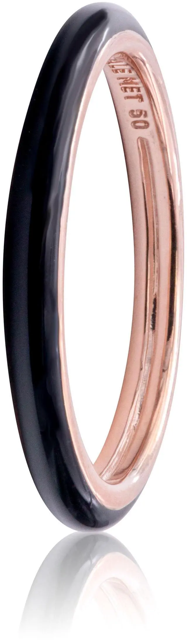 Remix your ring stacks with this Pandora ME Black Enamel Ring ready to be styled mixed and matched into new metal and color combinations that suit your mood every day. This 14k rose-plated ring has been decorated with hand-applied black enamel for a cool contrasting finish. Reach a level of personalization you love by connecting this statement stacking ring to your other favorites using the Pandora ME Styling Two-ring Connector then add up to two mini dangles that express who you are. Ready to re-style your double ring stack Follow a few simple steps to make sure your two favorite pieces detach with ease so you can remix your look over and over.
