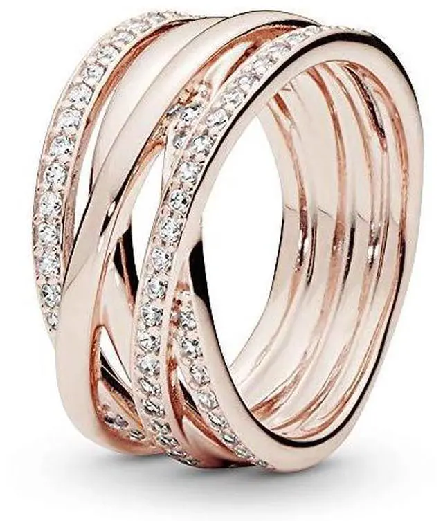 Let your individuality shine with this Sparkling & Polished Lines Ring. In a 14k rose gold-plated finish this sophisticated and contemporary design entwines rows of polished metal with rows of shimmering cubic zirconia stones. This statement style can be worn on its own as a chic cocktail ring or together with other Pandora rings.