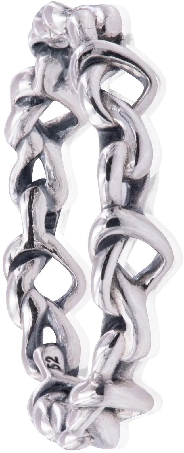 Detailed with a repeat openwork pattern of knotted hearts this eternity-style band ring in polished sterling silver is a precious symbol of emotional bonds