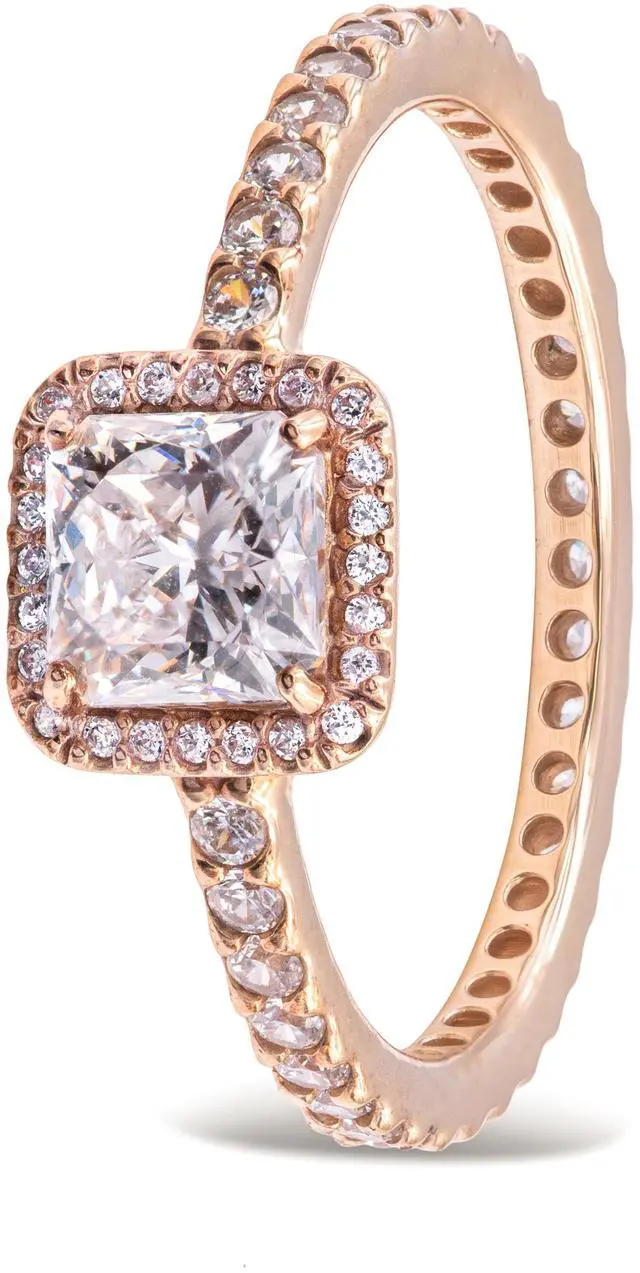 Tap into the trend of vintage-inspired jewelry with this beautiful halo design. Incorporating a single large Danube-cut cubic zirconia encircled by sparkling stone accents - this lavish 14K gold ring is a modern take on vintage style and perfect for any occasion.