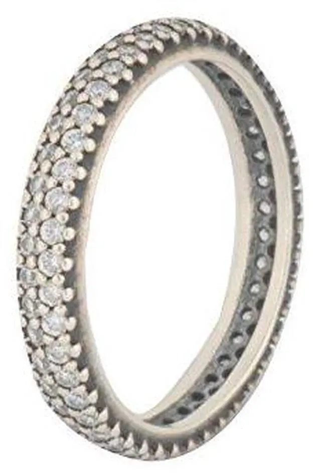 This glamorous ring features a curved surface and is covered in sparkling cubic zirconia. Wear it alone for everyday or stack it with other sparkling PANDORA rings for a truly dazzling evening look.