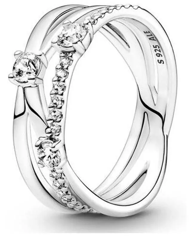 Say hello to a bold pre-stacked statement piece with the Sparkling Triple Band Ring. This new take on a bestseller is accented with three large cubic zirconia and a pave of smaller stones. The interlinked rings are a symbol of families coming together - the perfect gift for mom.