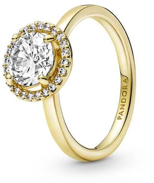 Classic yet modern the 14k gold-plated Sparkling Round Halo Ring features a round center stone encircled by a halo of brilliant-cut clear cubic zirconia pave. The Pandora logo is engraved on the inside of the shank. A timeless gift for an elegant Mom.