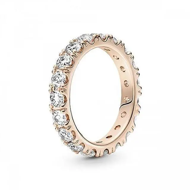 Make a classic statement with the Sparkling Row Eternity Ring. Hand-finished in our 14k rose gold-plated unique metal blend this eternity ring features a band inlaid with sparkling clear man-made cubic zirconia. The design looks equally beautiful worn solo or stacked with other rings. Style it with bands in similar tones to create a monochromatic look or go for contrasting metals for a combination that pops. This ring is designed to be a wardrobe essential for years to come.