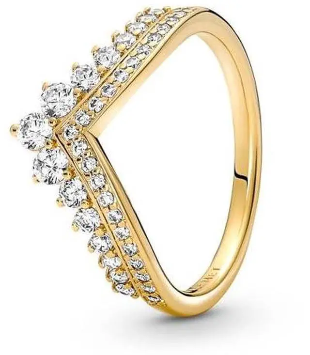 Let even more radiance into your ring styling with this glittering tiara ring fit for a modern-day princess. Inspired by royal headpieces from across history this 14k gold-plated wishbone ring will add a regal feel to your everyday looks. Set with rows of glittering cubic zirconia in classic settings the chevron-shaped piece is sure to be the crowning glory in any ring stack.