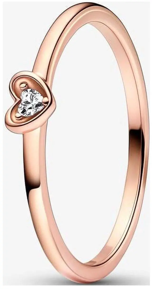 Our 14k rose gold-plated Radiant Heart Ring features a raised heart set with a heart-shaped faceted clear cubic zirconia