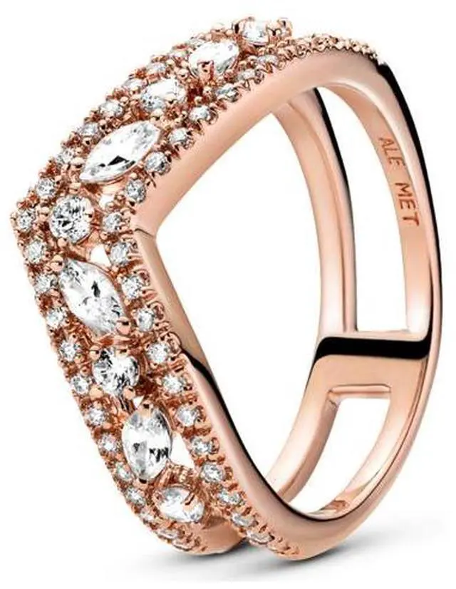 Step up your jewellery collection with the Sparkling Marquise Double Wishbone Ring. Hand-finished in 14k rose gold plating this statement piece is inspired by the shape of a wishbone. Two rings form the double ring band which features clear cubic zirconia. Ideal for additional stacking layer this 14k rose gold-plated wishbone ring with pieces hand-finished in sterling silver for a contrasting look with added sparkle.