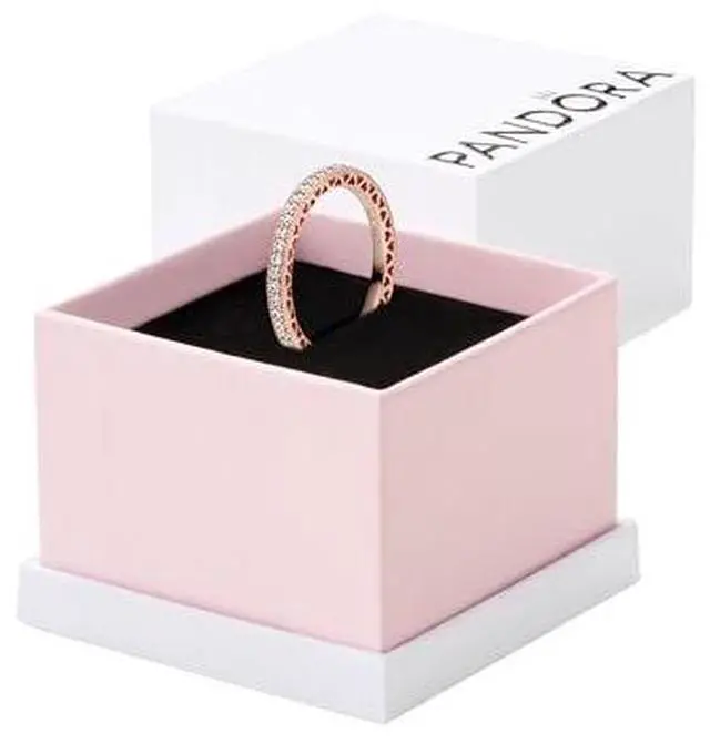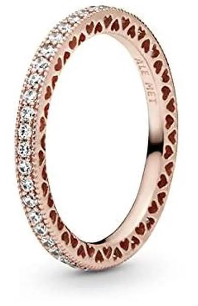 Express your hearts true desire with this sparkling eternity ring. Hand-finished in Pandora Rose a 14k rose gold-plated unique metal blend this elegant style beautifully combines dazzling cubic zirconia stones with delicate cut-out hearts. Showcase it on its own or mix and match with other Pandora stackable rings for a chic play on textures.