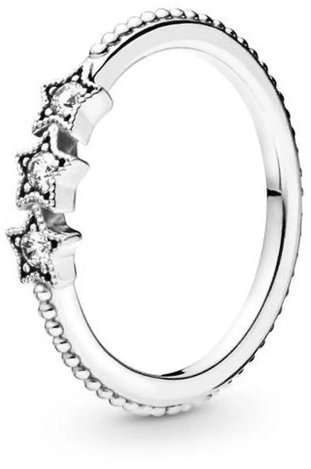 Aim for the moon and you will land among the stars as the famous saying goes. Capture the enchantment and wonder of the vast night sky with a delicate sterling silver ring featuring sparkling clear stones in dreamy starry shapes. Wear as a reminder to keep the magic alive in your day to day life or keep it as a special occasion piece which you bring out whenever you want to dazzle with your individual style.