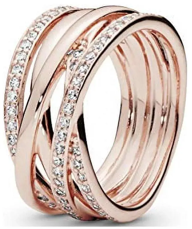 Let your individuality shine with this Sparkling & Polished Lines Ring. In a 14k rose gold-plated finish this sophisticated and contemporary design entwines rows of polished metal with rows of shimmering cubic zirconia stones. This statement style can be worn on its own as a chic cocktail ring or together with other Pandora rings.