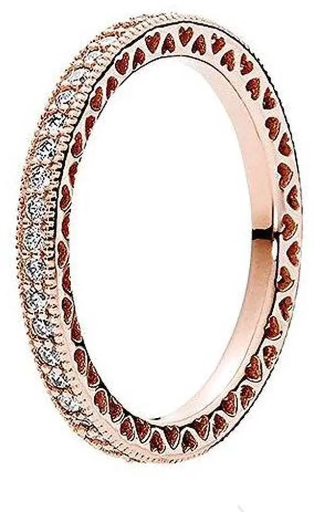 Express your hearts true desire with this sparkling eternity ring. Hand-finished in Pandora Rose a 14k rose gold-plated unique metal blend this elegant style beautifully combines dazzling cubic zirconia stones with delicate cut-out hearts. Showcase it on its own or mix and match with other Pandora stackable rings for a chic play on textures.
