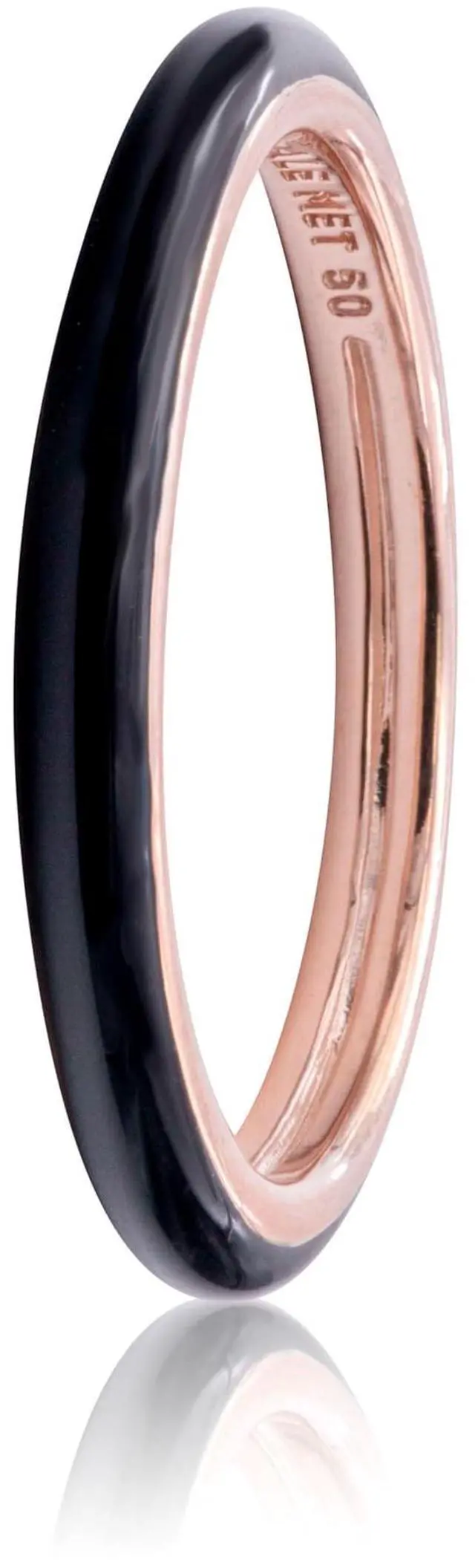 Remix your ring stacks with this Pandora ME Black Enamel Ring ready to be styled mixed and matched into new metal and color combinations that suit your mood every day. This 14k rose-plated ring has been decorated with hand-applied black enamel for a cool contrasting finish. Reach a level of personalization you love by connecting this statement stacking ring to your other favorites using the Pandora ME Styling Two-ring Connector then add up to two mini dangles that express who you are. Ready to re-style your double ring stack Follow a few simple steps to make sure your two favorite pieces detach with ease so you can remix your look over and over.