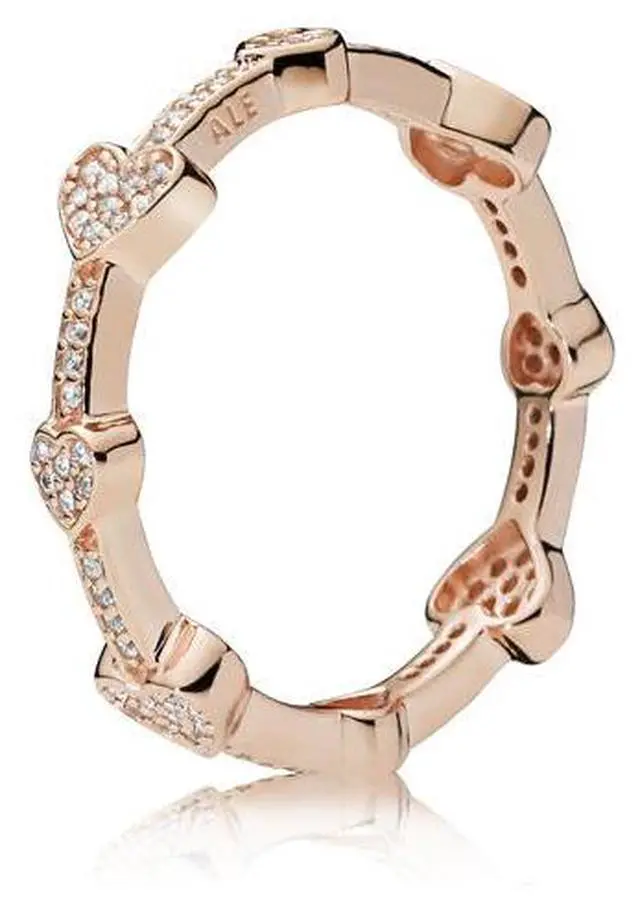 Add a little love to your fingers with this PANDORA Rose ring. Continuous bursts of hearts and brilliant cubic zirconia stones create stunning contrasts. These hearts are open to many different looks.