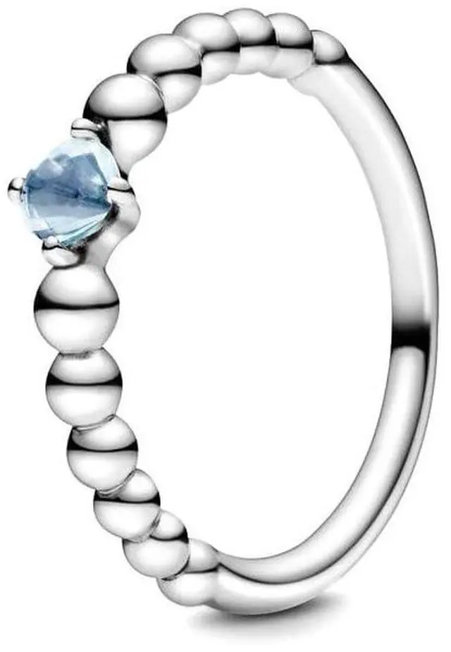 A swimming pool on holiday or the color of your childhood toy All that you are and all you love captured in color. Inspired by the beaded designs of Purely Pandora this ring is hand-finished in sterling silver and features a claw-set buff top-cut aqua blue man-made crystal. Wear it to define and redefine your style by choosing colors that express who you are. Style them by creating stacks on a single finger or wear them spread across both hands in tonal colors or simply those that hold great meaning for you.