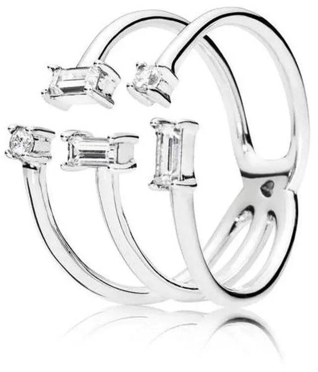 We all need a little sparkle in our jewellery line-up. Add some to yours with this standout style. Its made from sterling silver thats been expertly set with baguette-cut cubic zirconia that are designed to look like theyre floating between your fingers. It wraps elegantly around digits to create a stacked look.