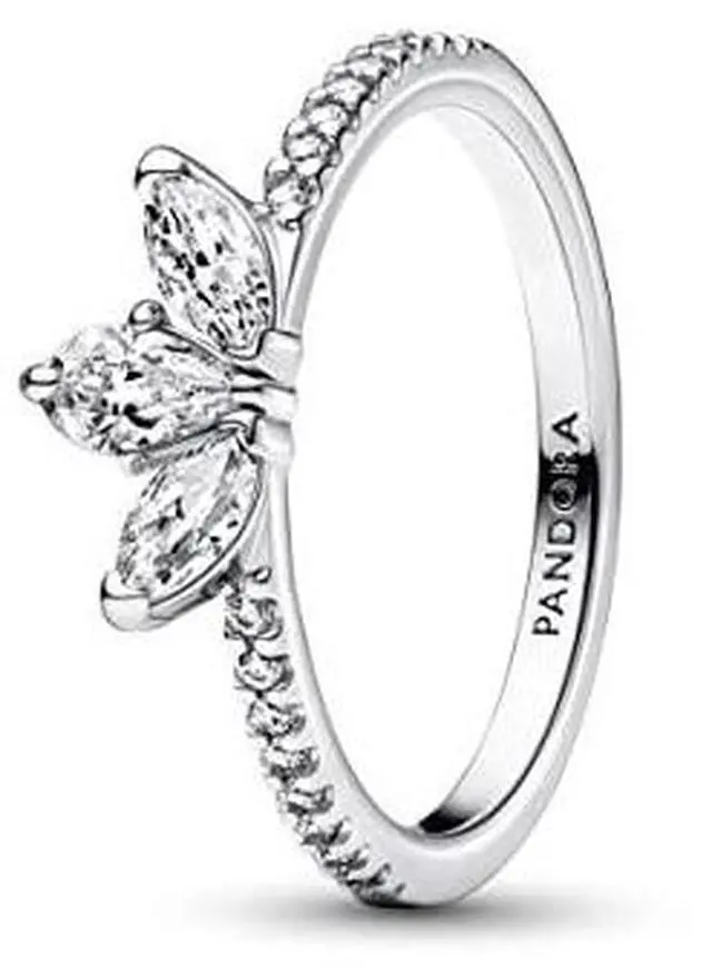 Our Sparkling Herbarium Cluster Ring features three central stones in a petal shape two marquise-shaped and one pear-shaped. Crafted from sterling silver this elegant ring is inspired by the beauty of nature with petal silhouettes that will never go out of style. When styled back-to-back they form a whole cluster motif giving an air of completeness to your stack.