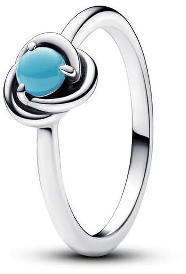 Wear a symbol of forever when you choose the December Birthstone Eternity Circle Ring. This sterling silver ring features one blue man-made crystal. The polished band wraps around the centre stone in an openwork braided infinity pattern. Whether you want to carry a reminder of eternal love or a symbol of the timeless joy that infuses each and every moment this colourful eternity ring will bring sparkling meaning to your look.