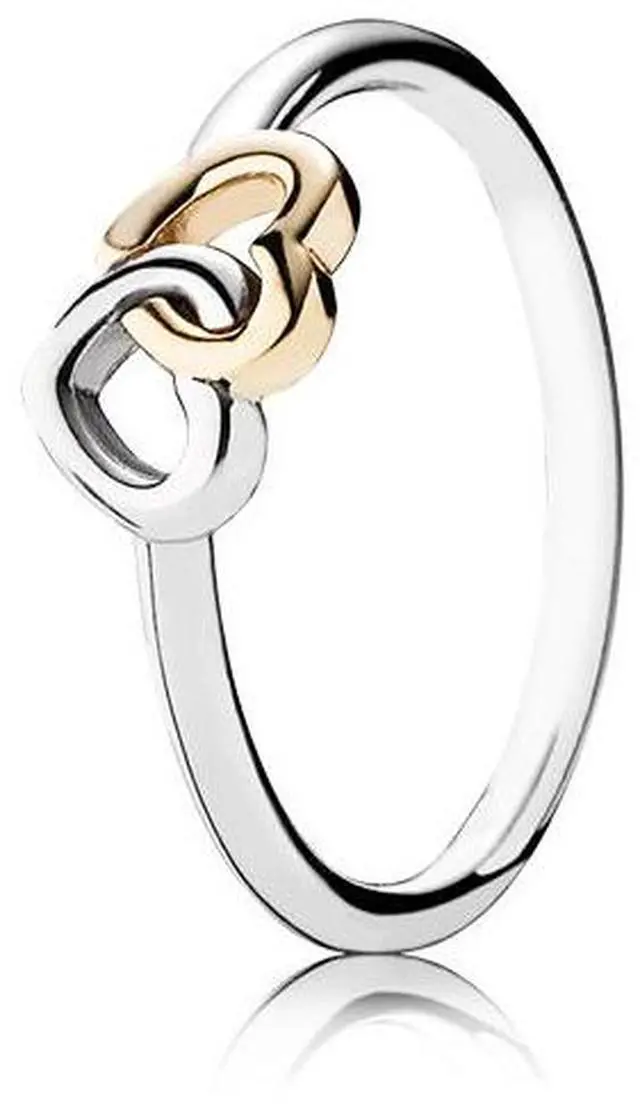 Two hand-finished interlocking hearts in sterling silver and 14K gold beat as one on this gorgeous two-tone ring by PANDORA. It is a timeless must-have addition to any collection and a great gift option for any woman.