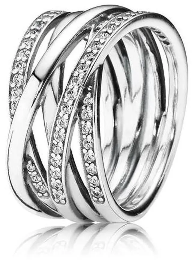 Let your individuality shine through this ring of sparkling and polished lines. Crafted in sterling silver. this sophisticated and contemporary design beautifully entwines rows of polished metal with rows of shimmering cubic zirconia stones. This statement style can be worn on its own as a chic cocktail ring or together with other Pandora rings.