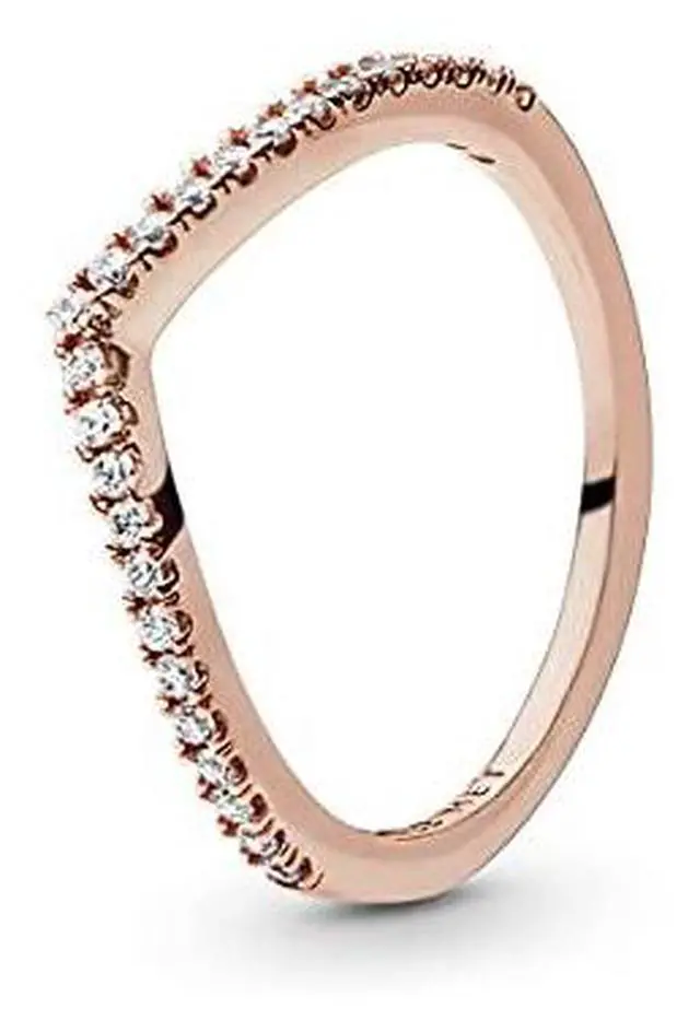 Make all your wishes come true with this delicate Pandora Rose ring lined with sparkling cubic zirconia stones. Simple yet elegant this wishbone-shaped ring can be worn on its own as a shimmering statement or paired with other Pandora stackable rings to create a unique highly individual look.
