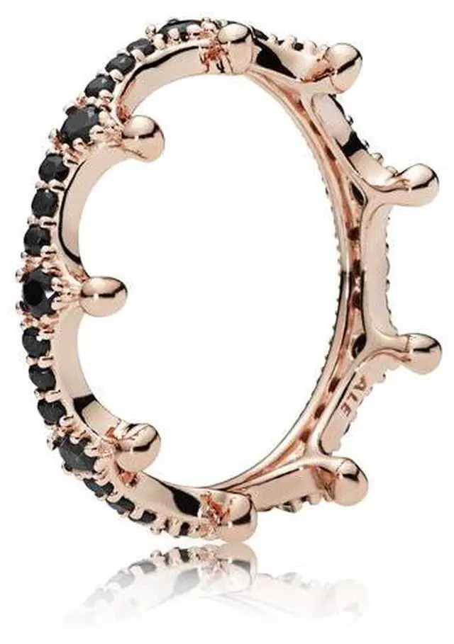Crown ring in PANDORA Rose with 36 bead-set black crystals. PANDORA RING - 187087NCK. Authentic Pandora Jewelry. Comes in original Pandora pouch/box.