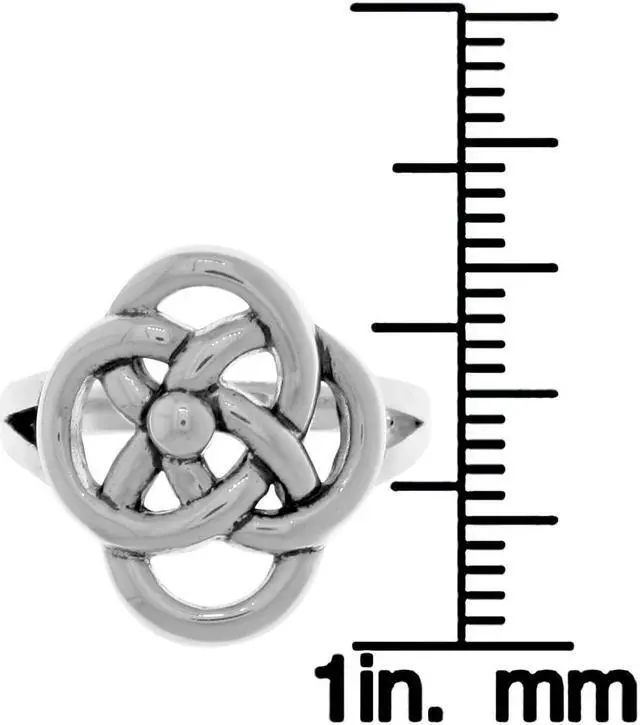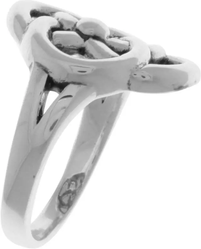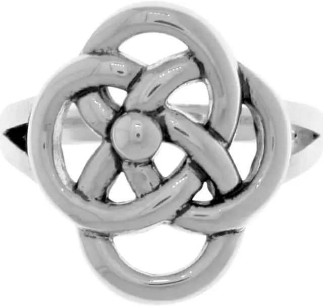 Symbolic of power and balance, this ring showcases a Celtic Five Fold Symbol. This ring is crafted of White Bronze plated with .925 Sterling Silver for a highly polished look. Ring is available in whole sizes 5 - 10. Peter Stone© Jewelry Designs are exclusive and protected by Copyright Laws.