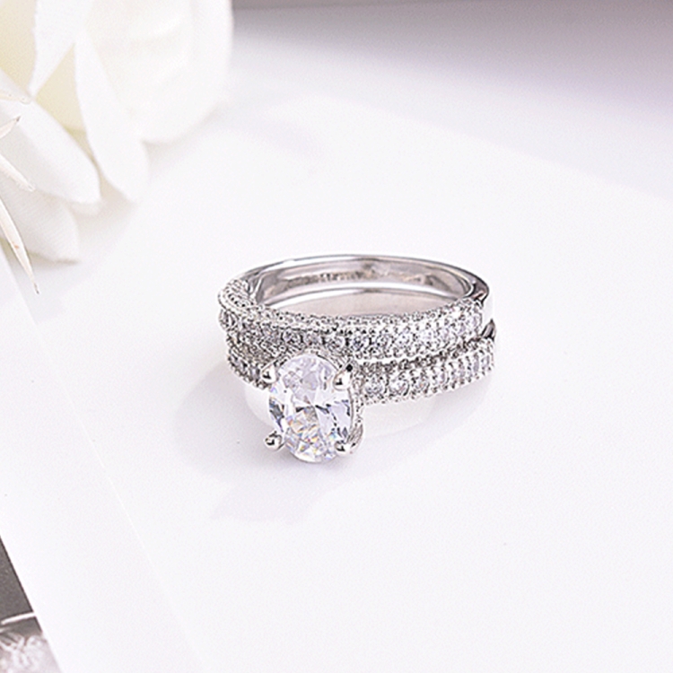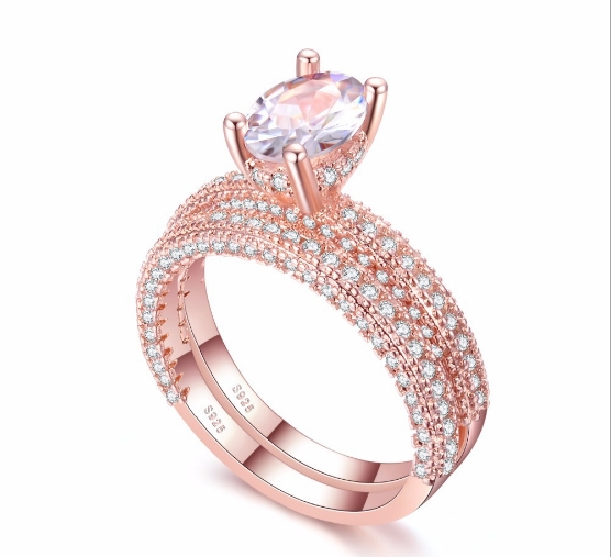 Double Row For Women Fashion Cubic Zirconia Wedding Engagement ring 10 (Egg Shape Rose Gold)