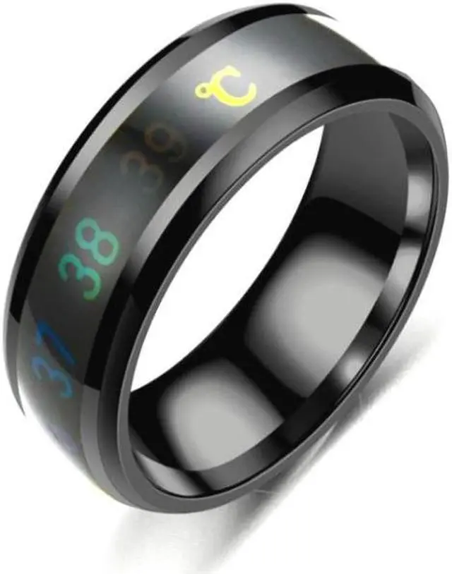 Smart Temperature Ring Stainless Steel Personalized Temperature Display Couple Ring, Size: 7 7 (Black)