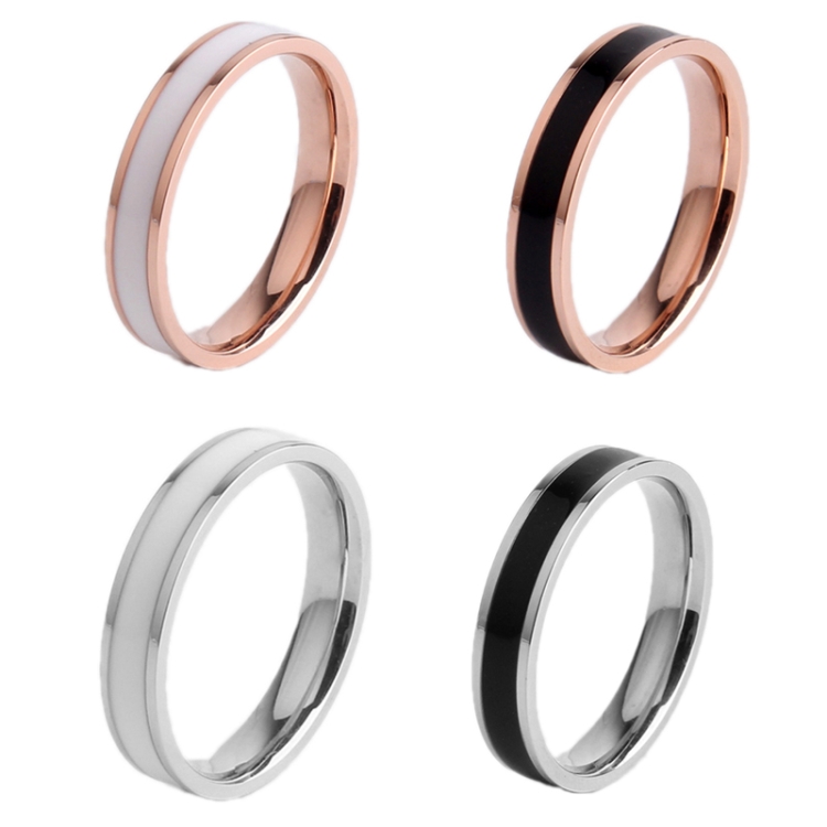Simple Black White Epoxy Couple Ring Women Titanium Steel Ring Jewelry, Size: US Size 5 US Size 5 (Black Glue Silver)