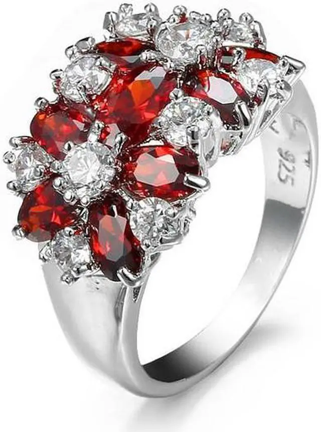 925 Sterling Silver Sparkling Rings Girls Crystal Engagement Jewelry 6 (Red)