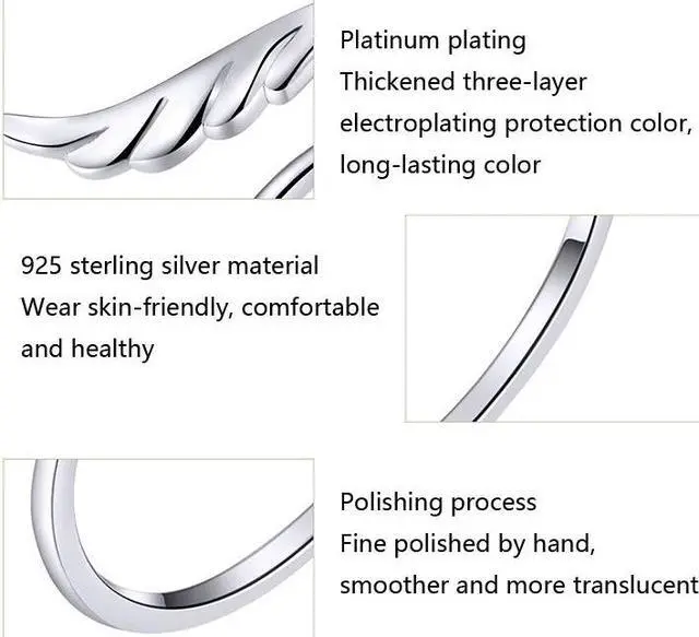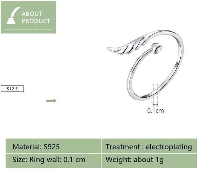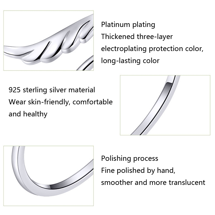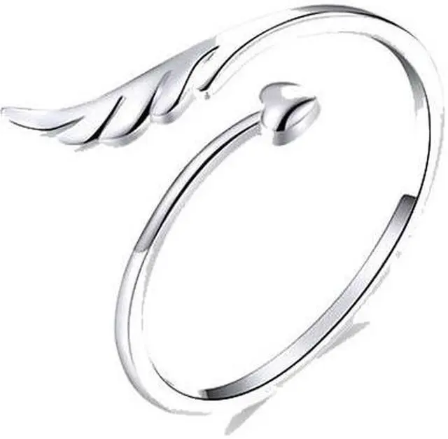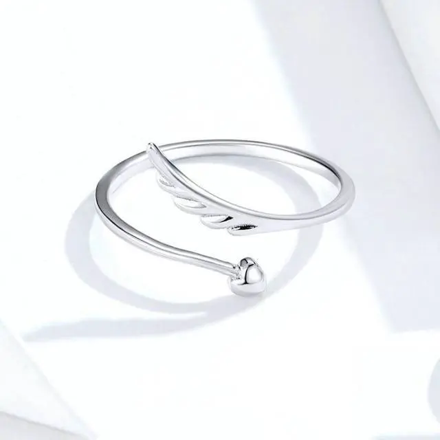 S925 Sterling Silver Angel Wings Open Ring White Gold Plated Open Ring SCR567