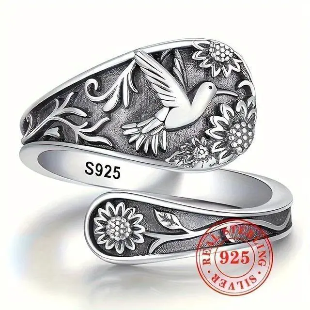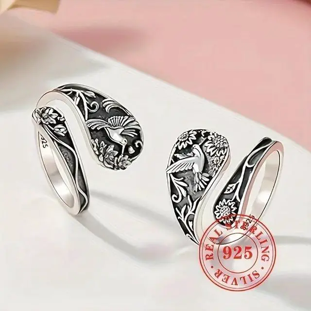 This S925 Sterling Silver Vintage Floral and Bird Pattern Ring is a beautiful blend of nature-inspired design and bohemian style. The intricate floral and bird patterns give it a timeless, vintage charm. The adjustable open band ensures a perfect fit for both women and men, offering comfort and style for any occasion. Whether you're attending a party, going on vacation, or looking for a unique accessory for daily wear, this lightweight 3g ring will add a touch of elegance and creativity to your outfit.