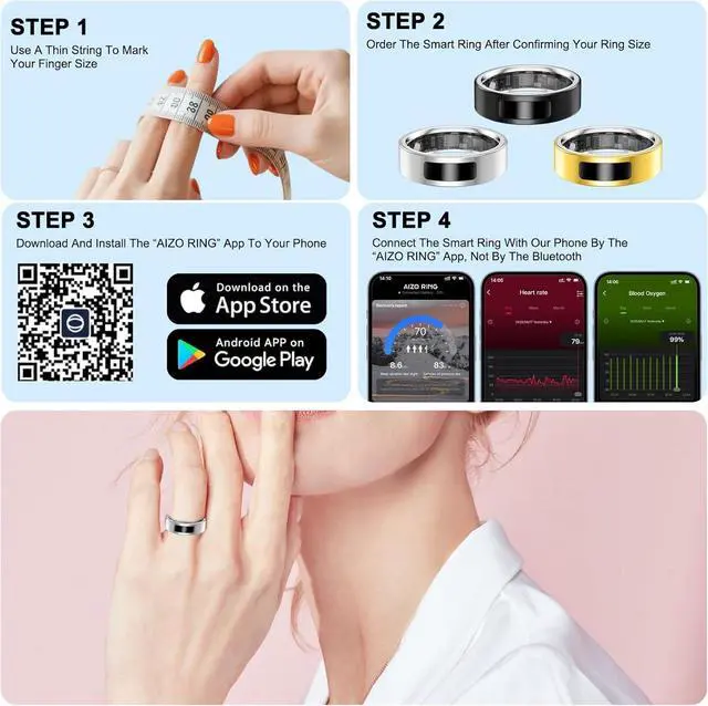 Smart Ring for Women Men, Bluetooth 5.4 Fitness Ring with Touch, Fitness Tracker with Vibration Reminder, IP68 Waterproof Ring with 6-Day Battery Life for iPhone/Android (Silver, Size 10)
