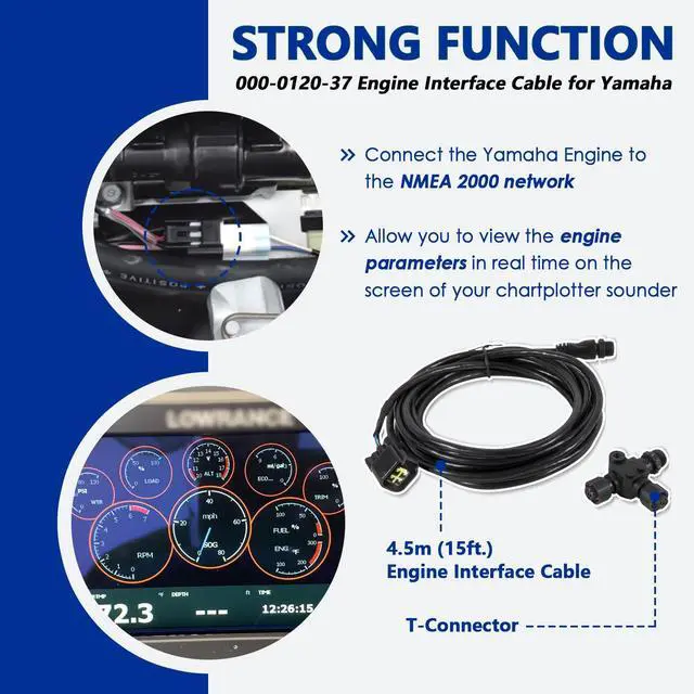 Strong Function An interface cable for connecting the Engine to the NMEA 2000 network allows you to view the engine parameters in real time on the screen of your chartplotter sounder. Includes interface sensor, 4.5 m/15 ft. cable and network bus T-connector