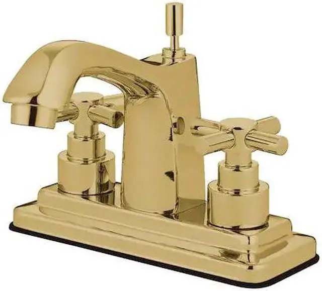 California Proposition 65: This product contains a chemical known to the State of California to cause birth defects or other reproductive harm. This faucet's modern features create a bold and edgy design in your bathroom. Centerset bathroom faucets are ideal for smaller bathrooms and feature an easy 3-hole installation. The Elinvar 4-inch centerset bathroom faucet with brass pop-up and its featured sturdy brass construction and premium polished brass finish are guaranteed to glamorize your home's modern ensemble for years to come. A matching finish drain is also included.