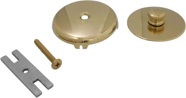 Includes push-pull stopper- overflow plate- reversible threaded adapter and bath shoe