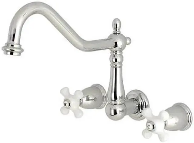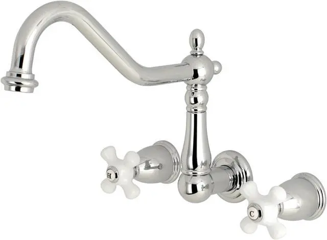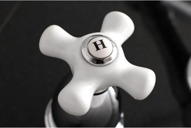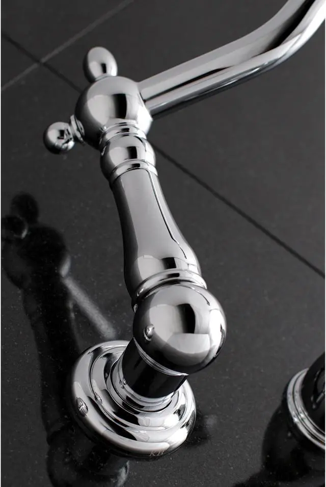 Fill your bathtub in elegance and style with the Heritage Roman Tub Filler. This tub faucet is constructed from solid brass for long-lasting durability- quality- and performance and also utilizes ceramic disc cartridges for drip-free usage. The two handles are easy to operate allowing the user to turn the water on and off with ease. The Heritage Roman Tub Filler coordinates beautifully with the other products from the Heritage Collection.
