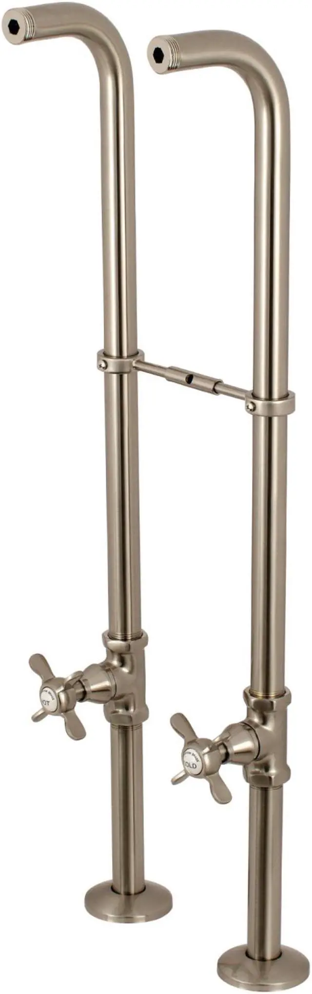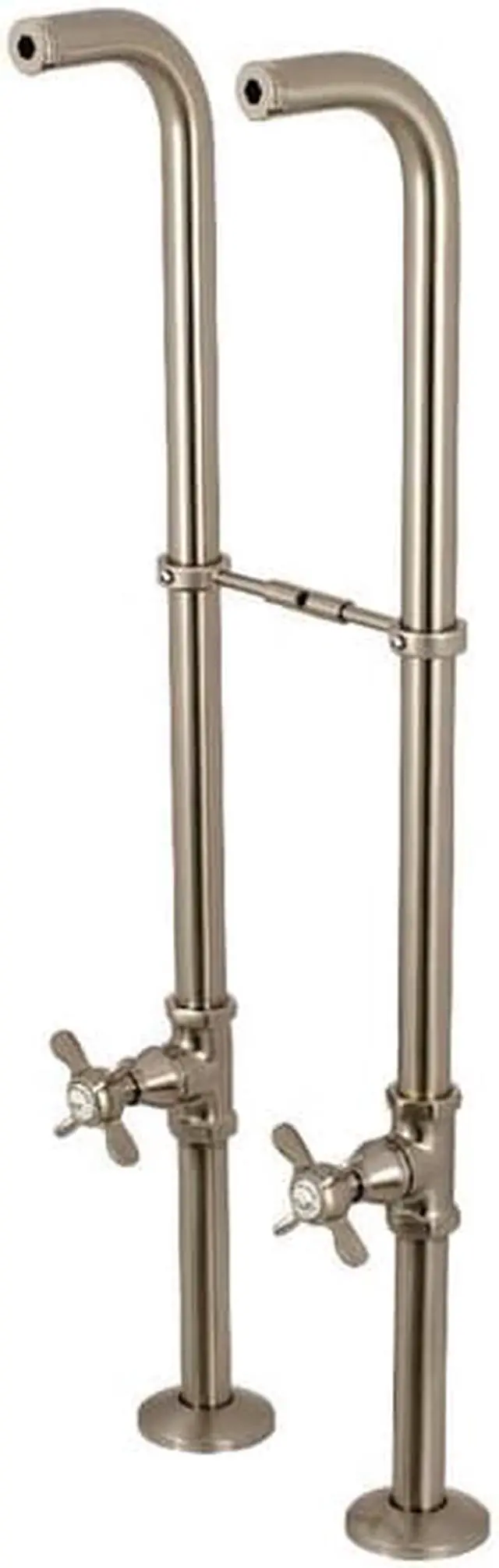 Unity in balance and support is what this freestanding tub faucet embodies with an included supply line- stop valve and handle from the Kingston Collection. Composed from solid brass material- this tub and shower set features a floor-mount installation and spout water flow rate of 7.0 GPM/26.5 LPM at 80 PSI- while the hand shower provides a water flow rate of 1.8 GPM/6.8 LPM at 80 PSI. Excellence of endurance and reliability is emboldened by a corrosion-resistant finish- embellish your home ensemble with this tub faucet and parts set.