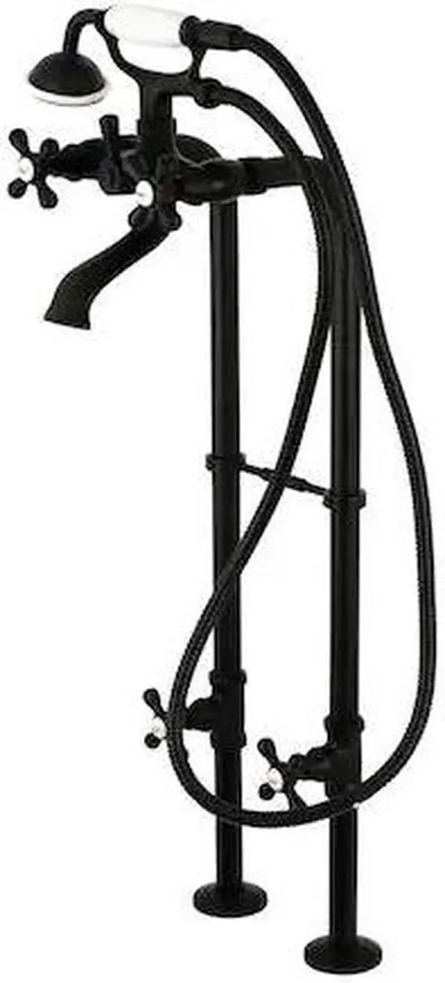 Unity in balance and support is what this freestanding tub faucet embodies with an included supply line- stop valve and handle from the Kingston Collection. Composed from solid brass material- this tub and shower set features a floor-mount installation and spout water flow rate of 7.0 GPM/ 26.5 LPM at 80 PSI- while the hand shower provides a water flow rate of 1.8 GPM/ 6.8 LPM at 80 PSI. Excellence of endurance and reliability is emboldened by a corrosion-resistant finish- embellish your home ensemble with this tub faucet and parts set. Features Fabricated from solid brass Floor mount installation 7.0 Gpm/ 26.5 Lpm spout flow rate at 80 psi 1.8 Gpm/ 6.8 Lpm hand shower flow rate at 80 psi 28- Height from floor