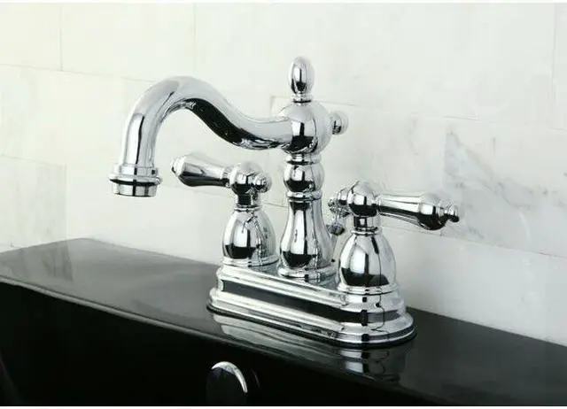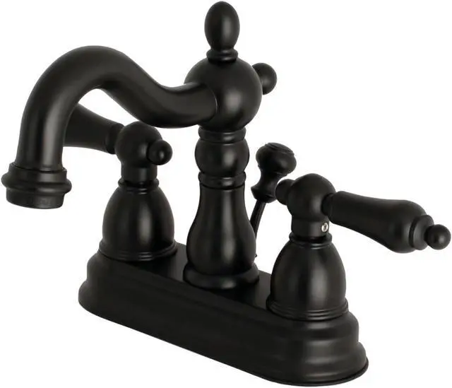 California Proposition 65: This product contains a chemical known to the State of California to cause birth defects or other reproductive harm. A lavish spark of traditionally stylized glamour is brought to your bathroom ensemble with this beautiful faucet. Centerset bathroom faucets are ideal for smaller bathrooms. The Heritage 4-inch centerset bathroom faucet with plastic pop-up and its sturdy brass construction and premium matte black finish are guaranteed to glamorize your home. Celebrate sophistication and traditional decor with this statement piece. A matching finish drain is also included.