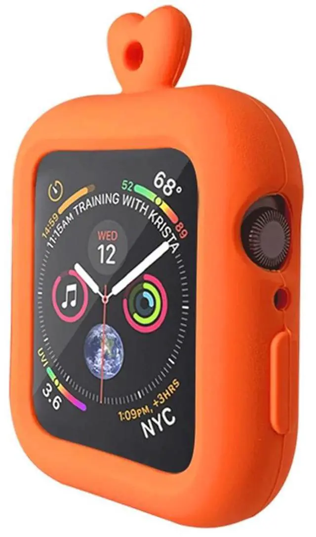 • Silicone Case with Lanyard Smart Watch Exterior Protective Case for Ap-ple Watch Series 4 38/40/42/44mm Cover Shell Bumper(Orange 38 40mm)