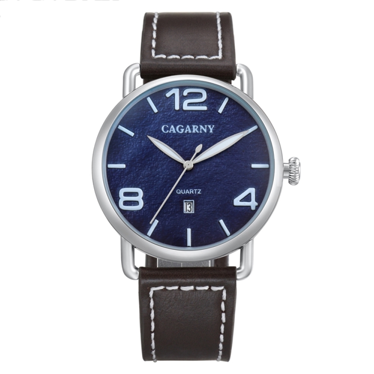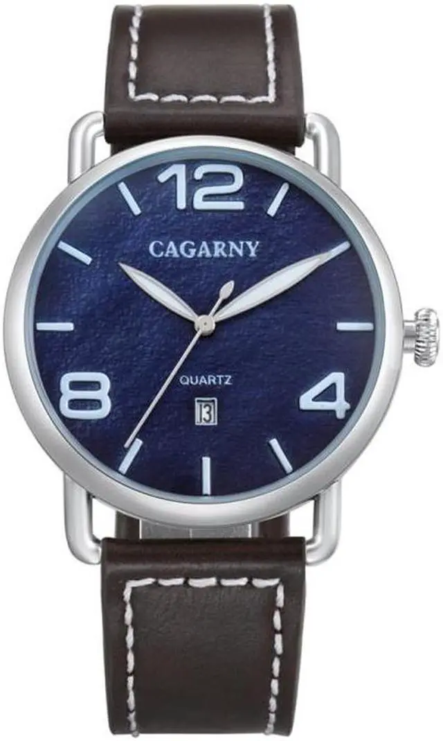 CAGARNY 6815 Living Waterproof Round Dial Quartz Movement Alloy Case Fashion Watch Quartz Watches with Leather Band (Blue) Black