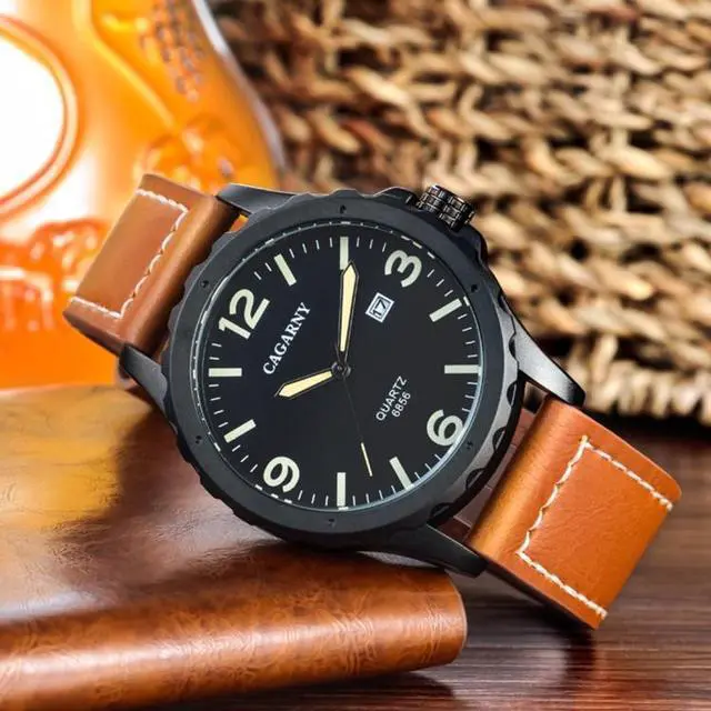 CAGARNY 6856 Fashion Quartz Movement Wrist Watch with Leather Band (Brown)